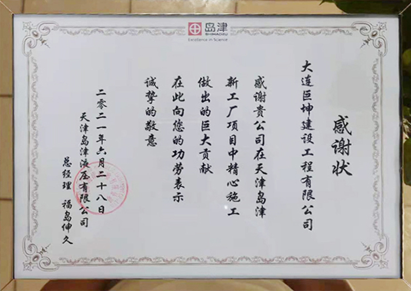 2021年6月28日,我司承建的天津岛津液压有限公司新工厂项目正式竣工交付,并于同日举行了盛大的竣工典礼。公司董事长侯连深、天津地区负责人于兴波等领导出席了竣工典礼。仪式上业主对我司在本项目中的细致施工及科学管理给与了充分肯定,并对我司进行了感谢表彰。