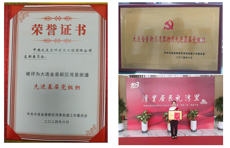 此次荣获“先进基层党组织”和“优秀共产党员”称号,是对党支部和党员工作的充分肯定和高度评价。大连巨坤党支部自建党百年之时成立,积极发挥党组织的战斗堡垒作用和党员的先锋模范作用,坚持“党建工作就是生产力”,坚持“支部建在项目上”,确保“工程项目建到哪里,党组织的作用就发挥到哪里”。在工程项目建设中,一名党员一面旗帜,所有党员冲锋在前,攻坚克难,充分发挥了党员的先锋模范作用。