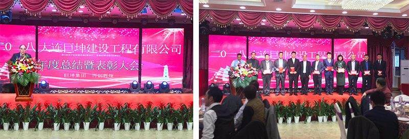 以 “勤奋务实、匠心前行”为主题的大连巨坤建设工程有限公司2018年终总结暨表彰大会于2019年1月23日9时30分在大连星程枫洋五号假日酒店隆重举行。参加此次年会的除了建设公司全体员工外,还邀请了巨坤集团各全资及控股子、分公司的领导、长期合作供应商领导、日本合作企业领导以及其它社会各界相关领导。