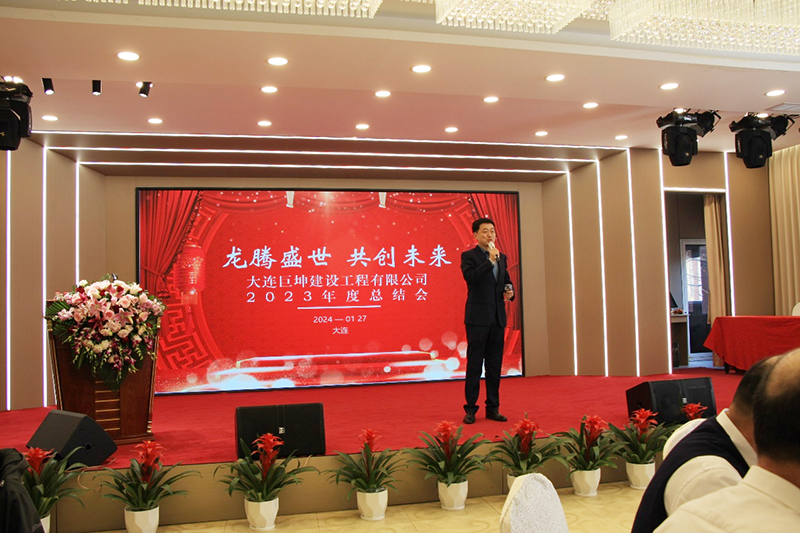 巨坤建设集团2023年度总结会于2024年1月27日在大连隆重召开,集团在连管理人员与外埠公司代表近200人齐聚一堂,共创未来。